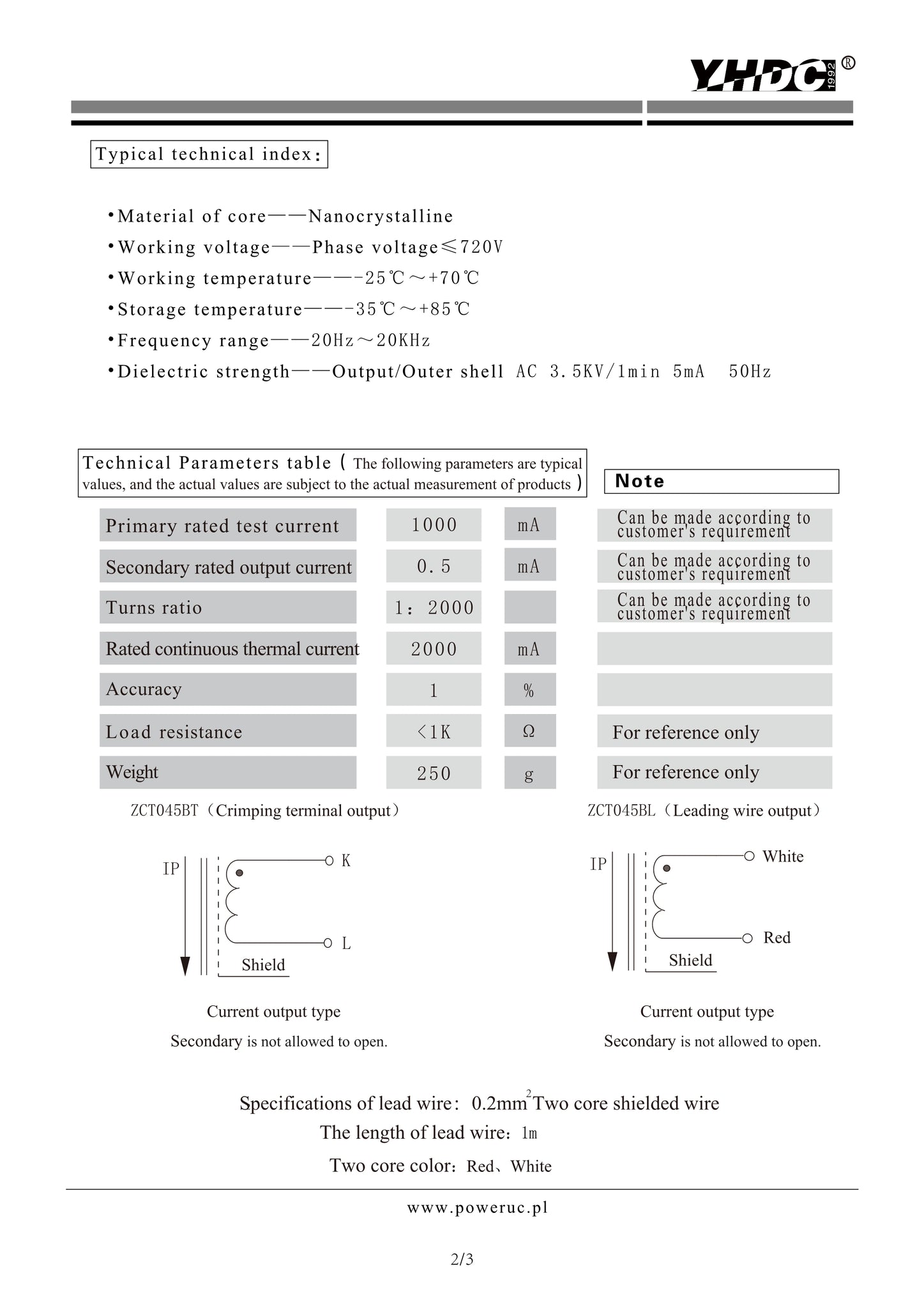 Zero sequence current/leakage current transformer ZCT045B(L/T) rated input 1A